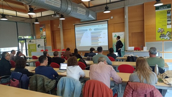 También se aprovechó para hacer transferencia sobre los modelos de seguimiento de enfermedades, una necesidad que los asesores habían puesto de manifiesto en las encuestas. En este ámbito, la profesora Concepció Moragrega, investigadora del grupo de Investigación en Patología Vegetal del Instituto de Tecnología Agroalimentaria de la Universidad de Girona, expuso la ponencia: “Modelos de predicción de la bacteriosis en frutos secos: WALLBLIGHT-RISK como herramienta de apoyo en el manejo de la bacteriosis en nogal”.