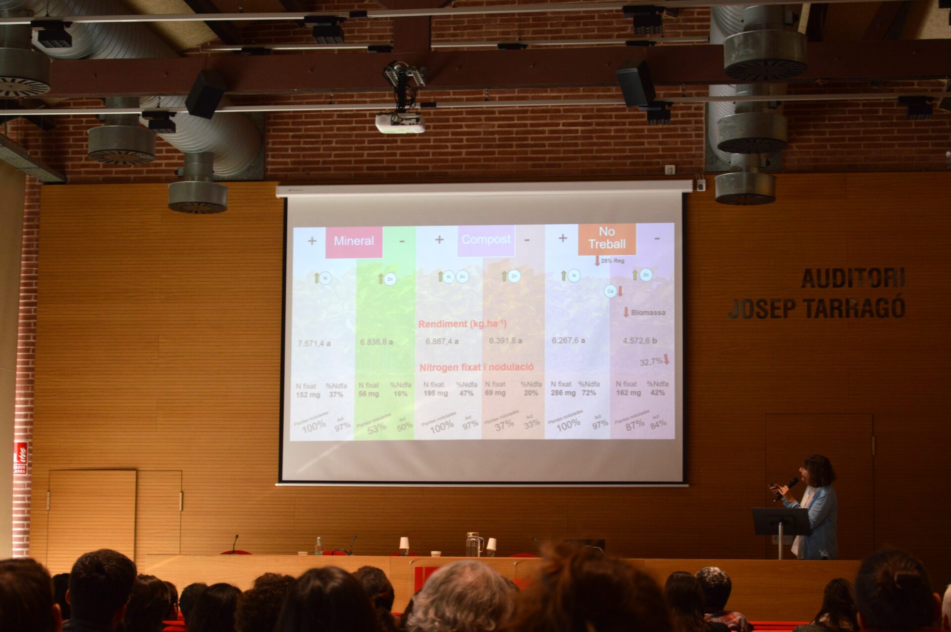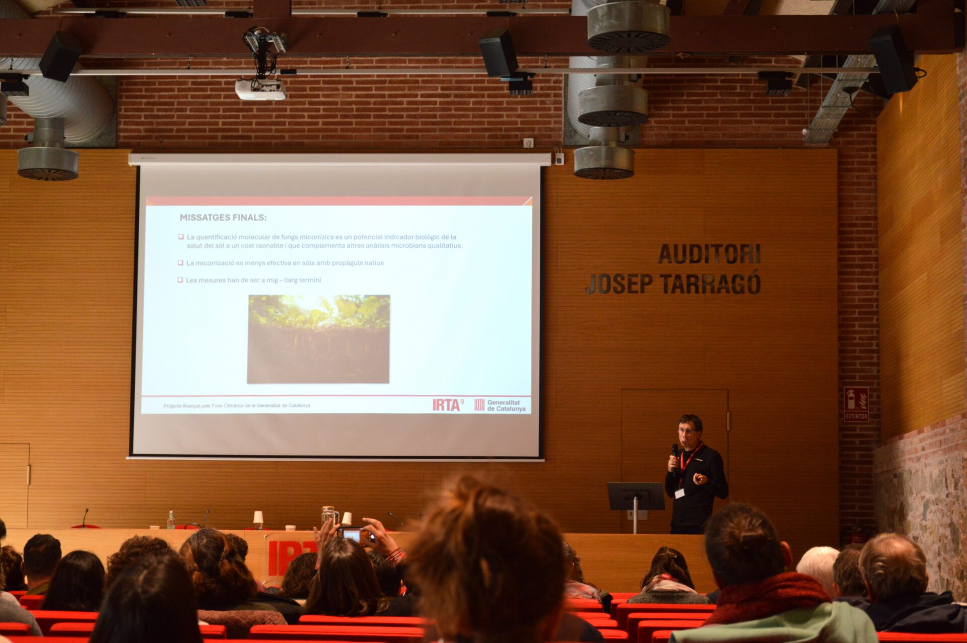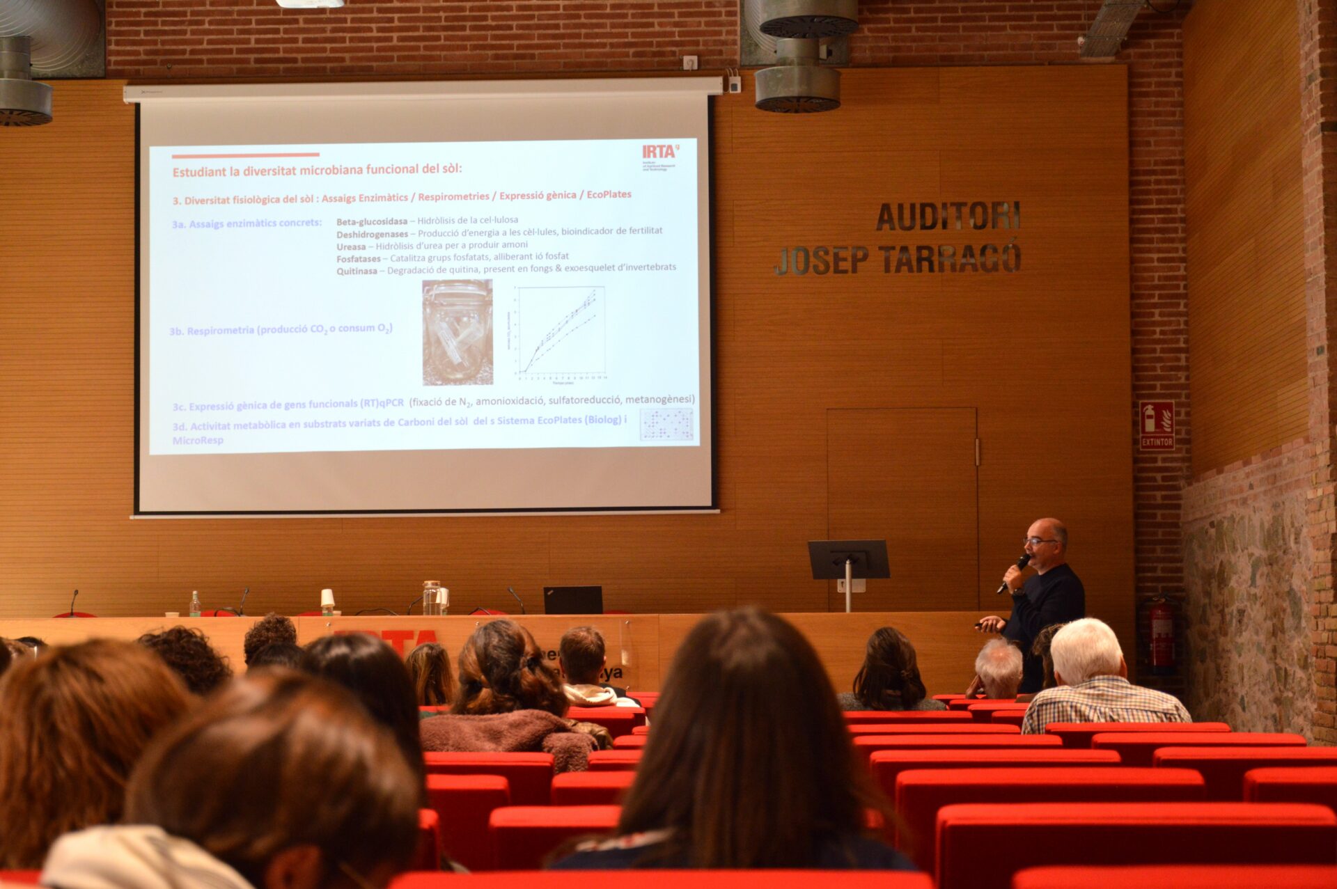 In one of the final presentations, Marc Viñas, a researcher in the IRTA’s Biosystems Sustainability programme, delved into the role of the microbiota and the rhizosphere in the productivity of agricultural soils, while Lucila Soledad González addressed the economic opportunities and possible incentive models associated with the regenerative transition, highlighting the need to align science, policy and economics to make the change of model viable.