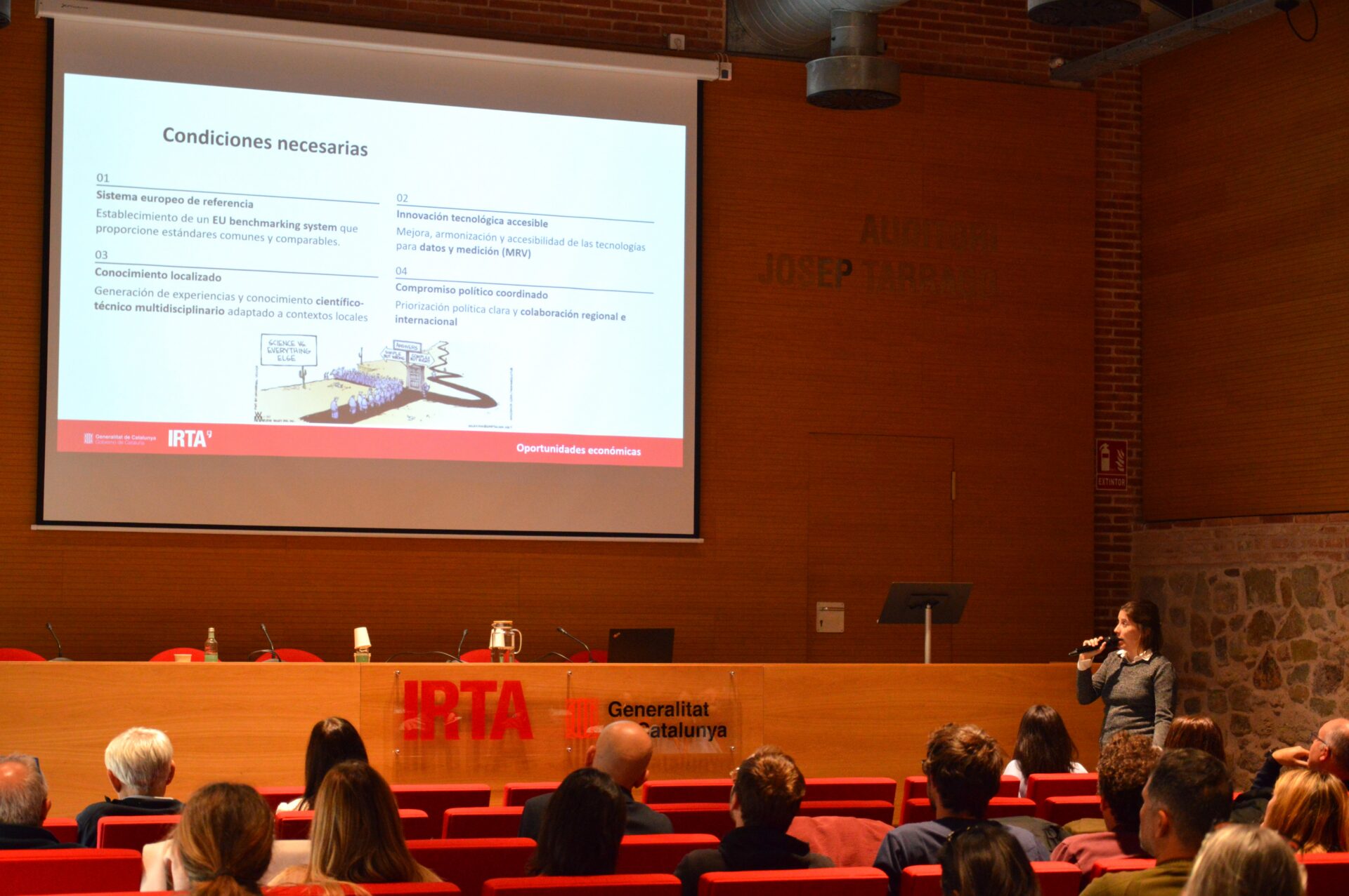 Next, the researcher from the IRTA’s Marine and Continental Waters programme, Maite Martínez-Eixarch has presented AgriCarboniCat, which has aimed to measure and increase carbon sequestration in agricultural soils, generating rigorous tools to assess its impact and providing data and creating incentive schemes and support mechanisms for the sector.