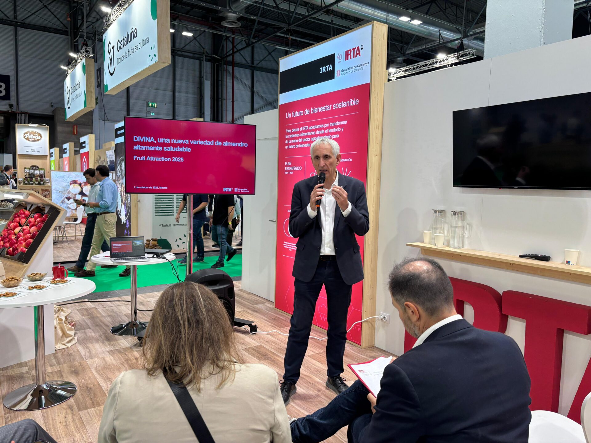 The Institute of Agri-Food Research and Technology (IRTA) has presented today at its Fruit Attraction 2025 stand the new almond variety DIVINA, the result of more than a decade of research. This is an almond that combines high nutritional value with key agronomic traits, such as extra-late flowering, self-fertility, and high productivity, designed to respond to the growing demand for healthy foods.