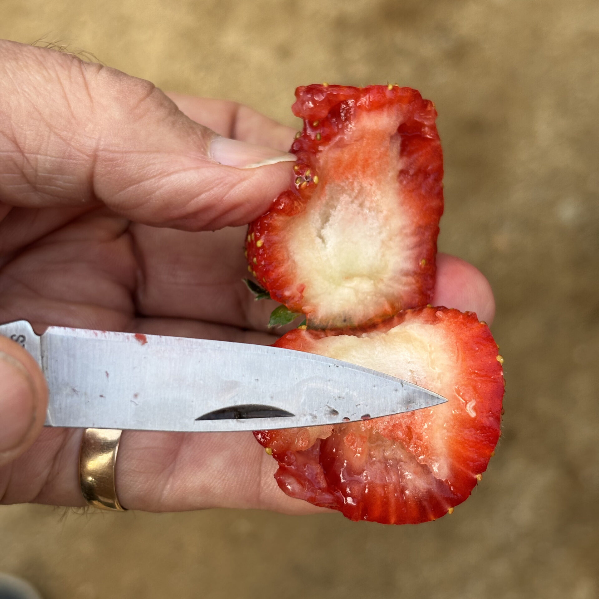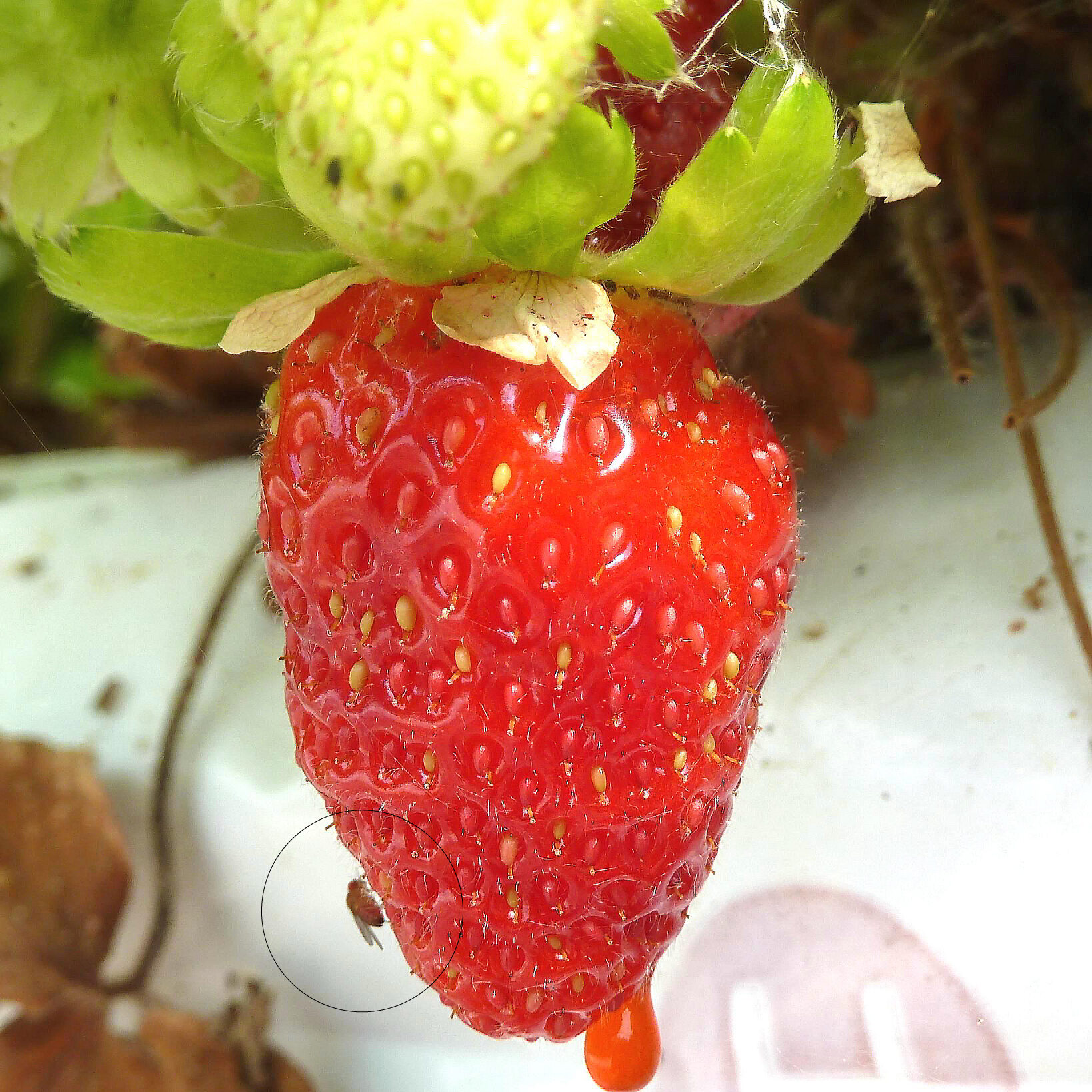 Drosófila de alas manchadas (Drosophila suzukii) en una fresa