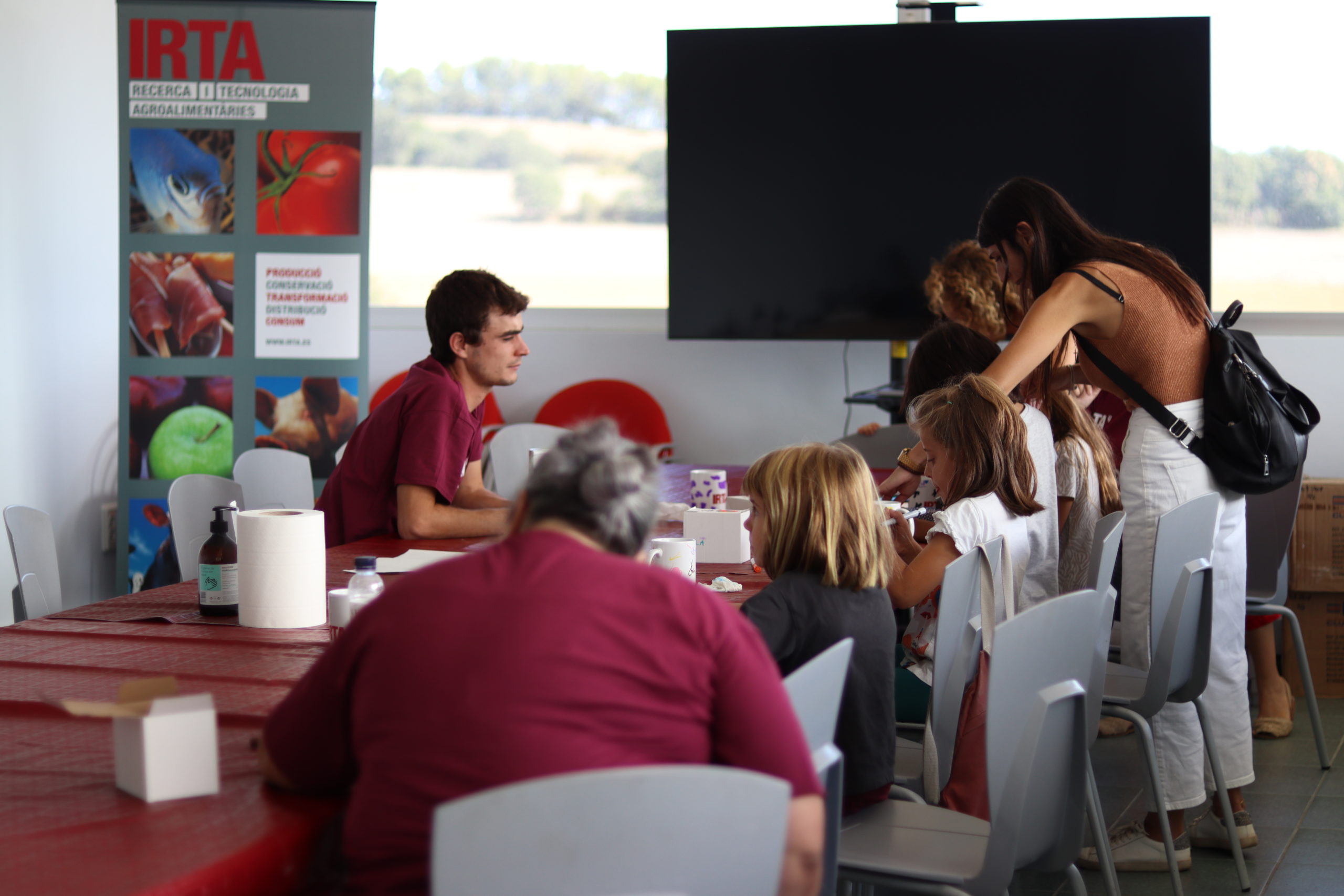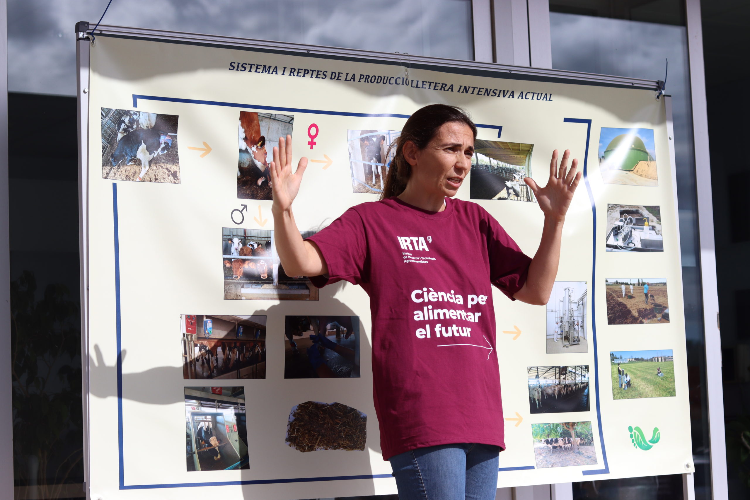 El pasado sábado 1 de octubre se celebró en el IRTA Monells una jornada de puertas abiertas para dar a conocer cómo el IRTA hace frente a diferentes retos científicos alrededor de la producción de la leche. Para hacerlo, se llevaron a cabo cuatro actividades para persones de todas las edades, con explicaciones y un juego sobre cómo reducir el uso de antibióticos y qué alternativas a éstos se están estudiando en el IRTA; una pequeña charla sobre cómo podemos producir energía a partir de las heces de las vacas, una explicación de cómo hacer la transición de terneros nacidos en granjas lecheras hacia granjas de engorde, y una cata de yogures que sirvió para explicar cómo se valora la calidad de los productos lácteos. También hubo un taller para los más pequeños, que pintaron tazas del IRTA e hicieron cajas nido a partir de tetrabriks.