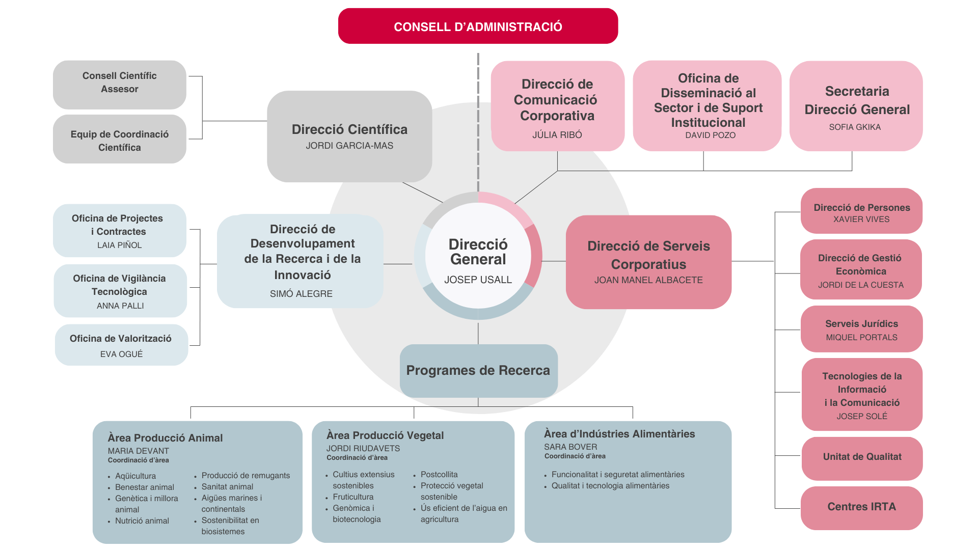 L’IRTA es una empresa pública de la Generalitat de Catalunya, regulada per la Llei 4/2009 de 15 d’abril del Parlament (BOE de 23 d’abril de 2009), que ajusta la seva activitat a l’ordenament jurídic privat. S’articula sota un consell d’administració, presidit pel conseller o consellera del Departament d’Agricultura, Ramaderia, Pesca i Alimentació, varies direccions sota el comandament de la direcció general, i una llista de programes de recerca.