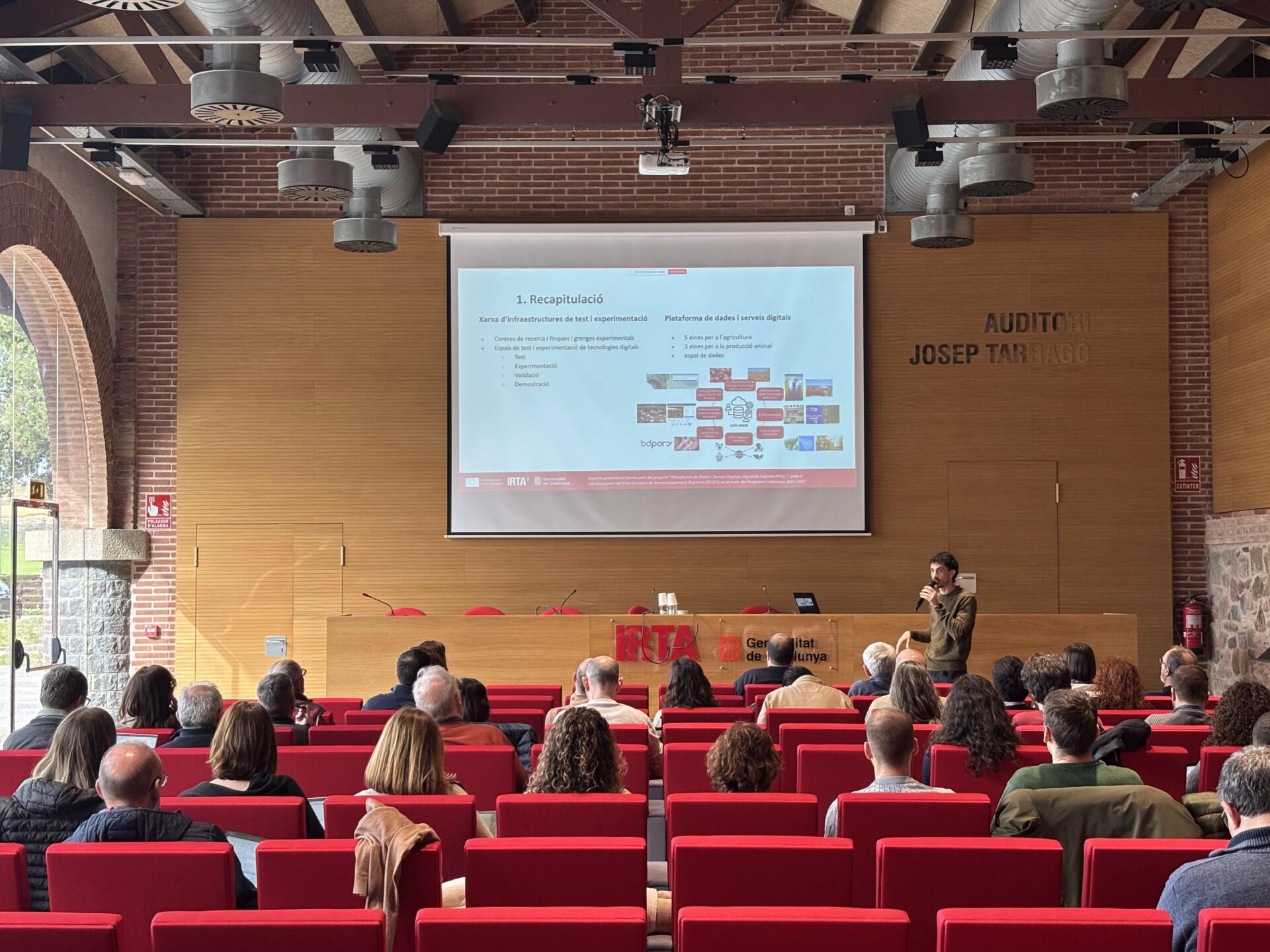 Durant la jornada també s’han presentat els principals reptes i el calendari d’actuacions previst, així com les eines i propostes que es recolliran en el repositori de noves tecnologies integrat dins la futura plataforma de dades i serveis digitals, que ha d’agrupar eines, tecnologies i models desenvolupats en diferents programes de recerca de l’IRTA.