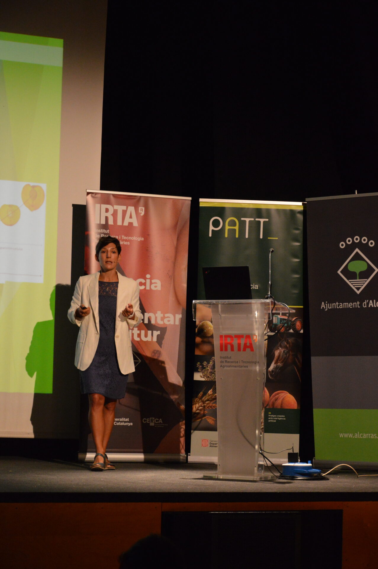 Durant la jornada s’han presentat els primers resultats del projecte Warm Peach, desenvolupat conjuntament per l’IRTA i el EEAD-CSIC. La investigadora del EEAD-CSIC Celia M. Cantín ha explicat que l’augment de temperatures està afectant el préssec amb problemes com mala floració, gelades tardanes, dificultats en la pol·linització i el quallat, i un augment de l’estrès hídric. Per això, s’ha decidit investigar com influeixen les temperatures durant el període de creixement i collita del fruit. A les instal·lacons de Lleida, s’ha situat presseguers dins una finca tancada per simular un context de canvi climàtic més avançat i amb més altes temperatures per veure com reaccionaria el fruit en un futur i així avançar-se a esdeveniments futurs.