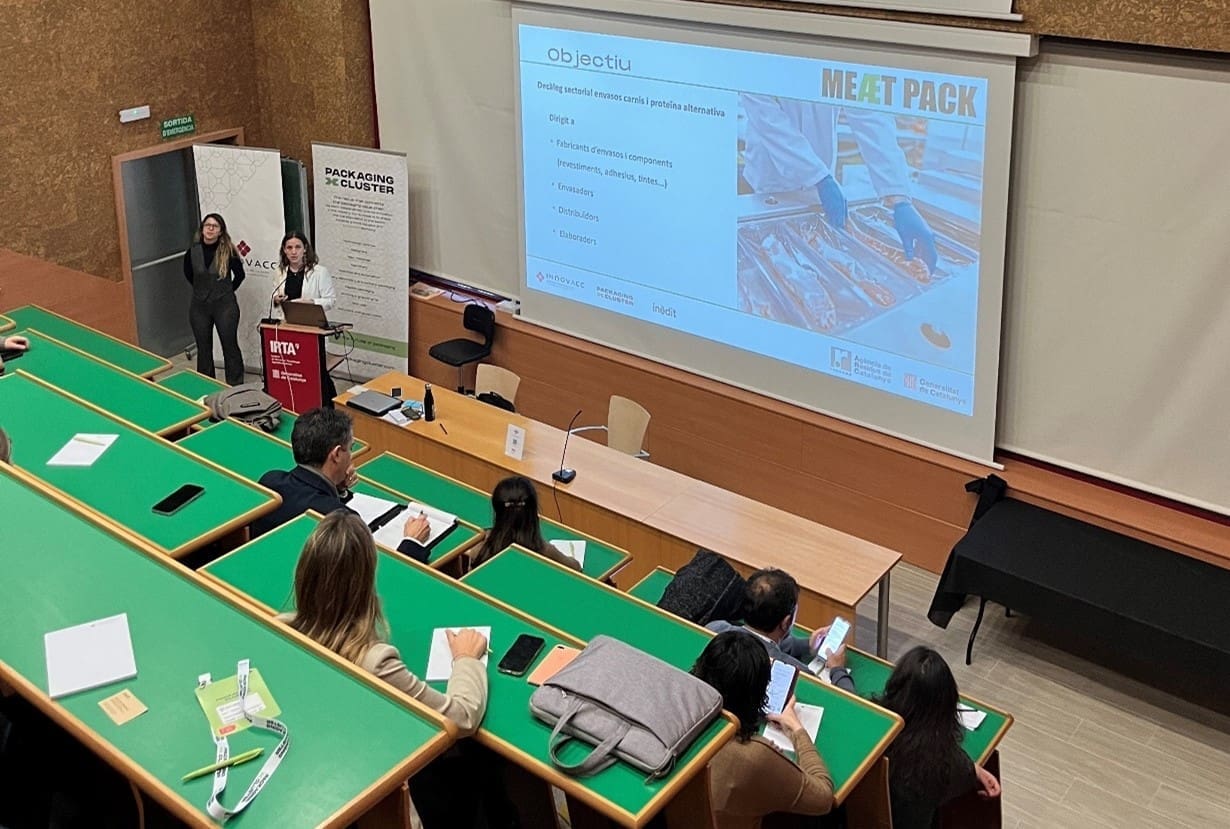 La jornada, que va comptar amb la participació de més de 50 assistents dels sectors del packaging i del carni i de la proteïna alternativa, constitueix l’esdeveniment final del projecte MEÆTPACK, on es va presentar en primícia la Guia sectorial dels envasos carnis i de la proteïna alternativa al context de l’Economia Circular i l’Ecodisseny, elaborada en el marc del projecte. L’estudi, finançat per l’Agència de Residus de Catalunya a través de la convocatòria de Projectes de foment de l’economia circular, ha analitzat les diferents solucions d’envasos sostenibles d’una manera holística, en tot el seu cicle de vida: tant per la petjada ecològica del propi packaging, com pel malbaratament alimentari del producte que contenen i que aquests envasos puguin evitar. MEÆTPACK és una iniciativa promoguda pel Packaging Cluster juntament amb INNOVACC, el clúster català de la carn i la proteïna alternativa, i executada per inèdit.