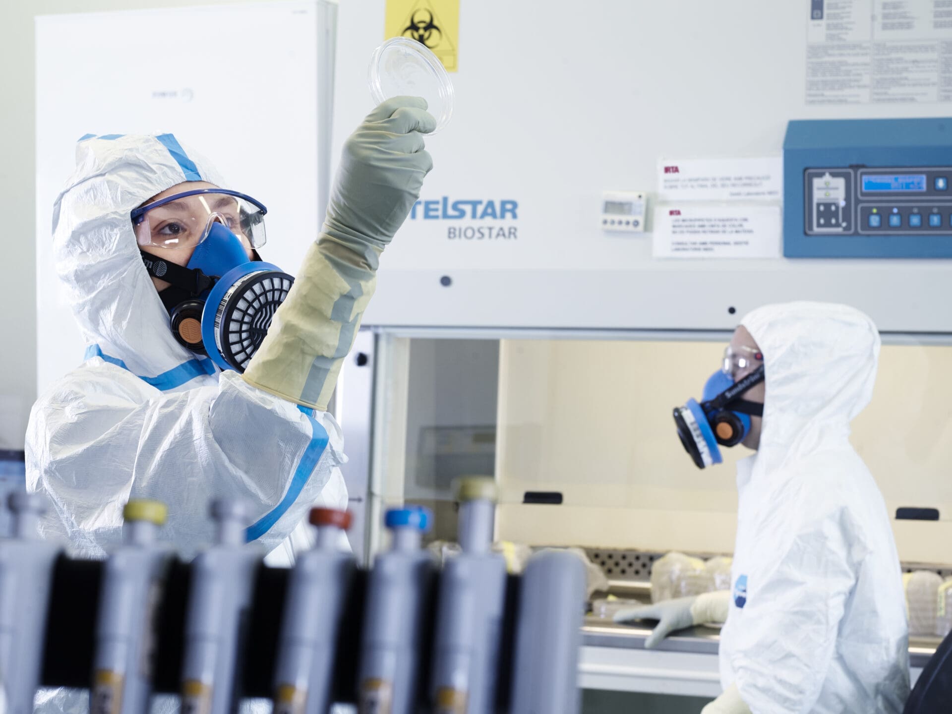 D’altra banda, també és novetat que el tap està foradat perquè dos tubs puguin entrar dins del recipient. Un dels tubs hi aporta el medi de cultiu a partir d’una ampolla externa que es cargola i descargola. Això minimitza possibles contaminacions.