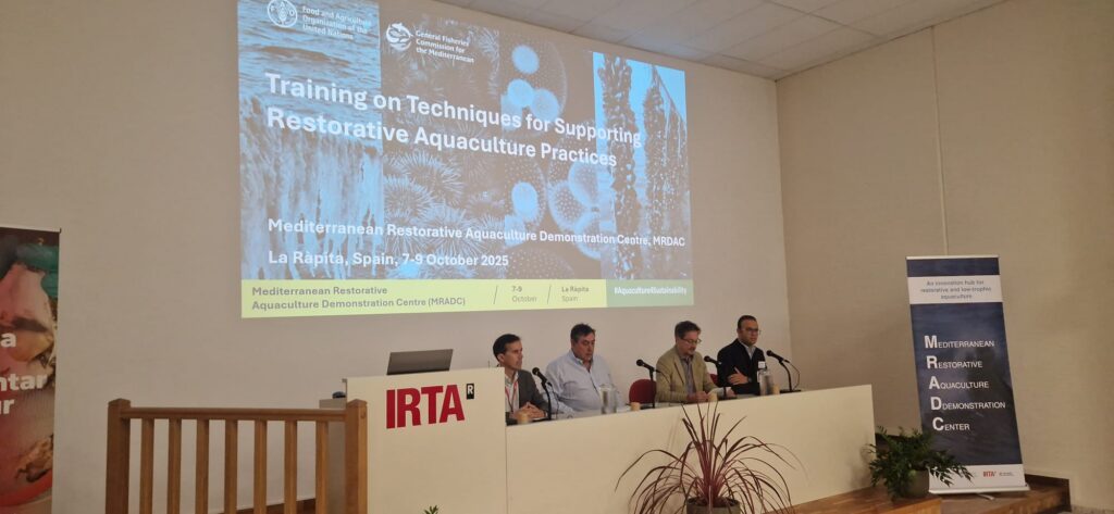 La formació s’ha celebrat al recentment inaugurat Centre de Demostració en Aqüicultura Restaurativa de la Mediterrània (MRADC) situat a IRTA La Ràpita, l’únic a Espanya reconegut com a centre de referència internacional en aquest àmbit.