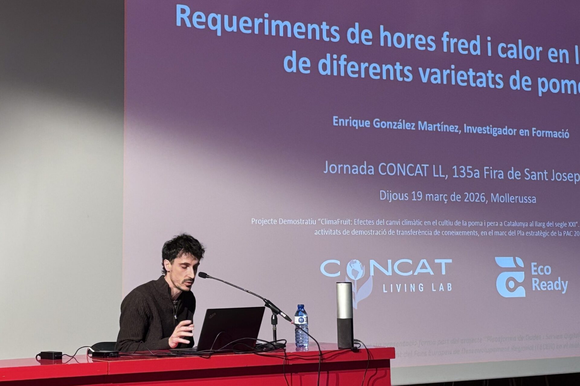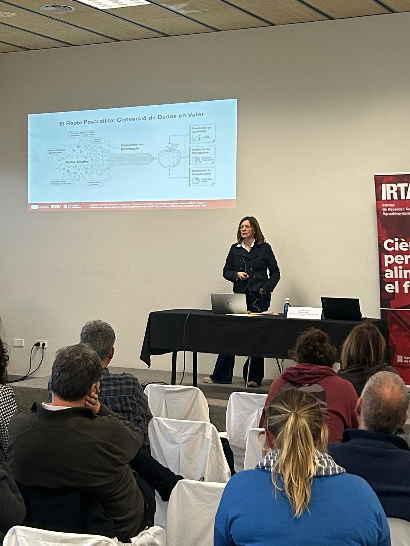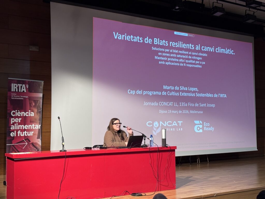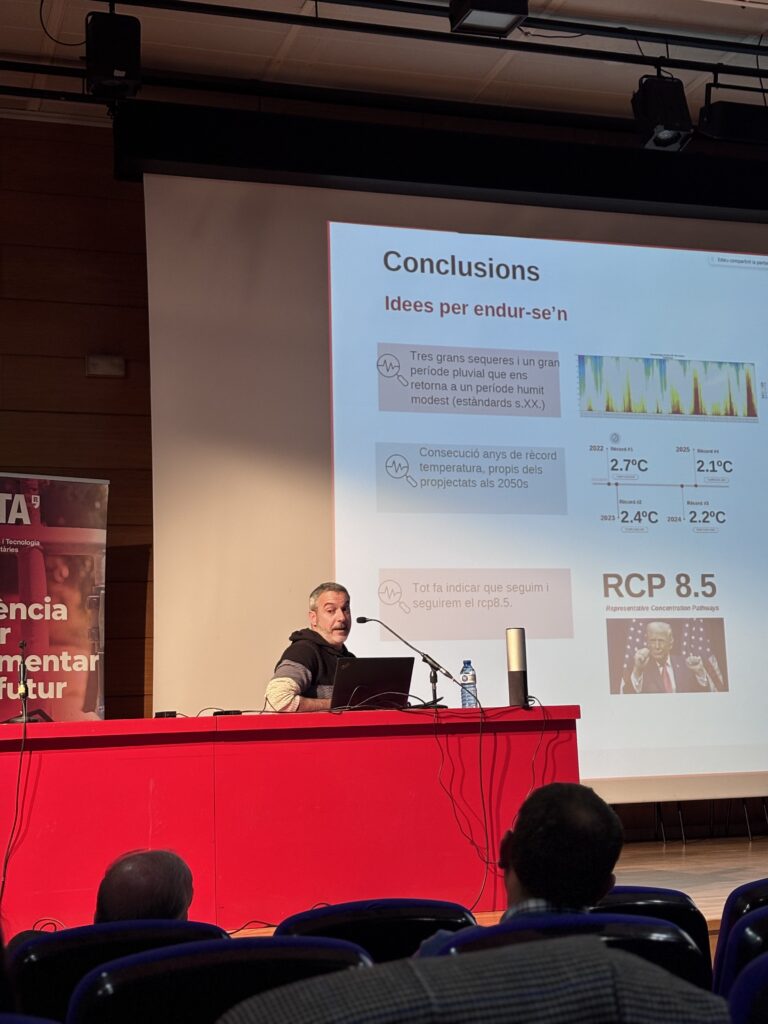 La primera sessió, celebrada dijous al matí al Centre Cultural de Mollerussa, s’ha centrat en el futur climàtic de Catalunya i en les estratègies d’adaptació del sistema agroalimentari. En aquest marc, s’han presentat resultats del projecte CONCAT Living Lab liderat des de l’IRTA, que analitza els efectes de la sequera i l’estrès tèrmic en diferents sistemes productius.