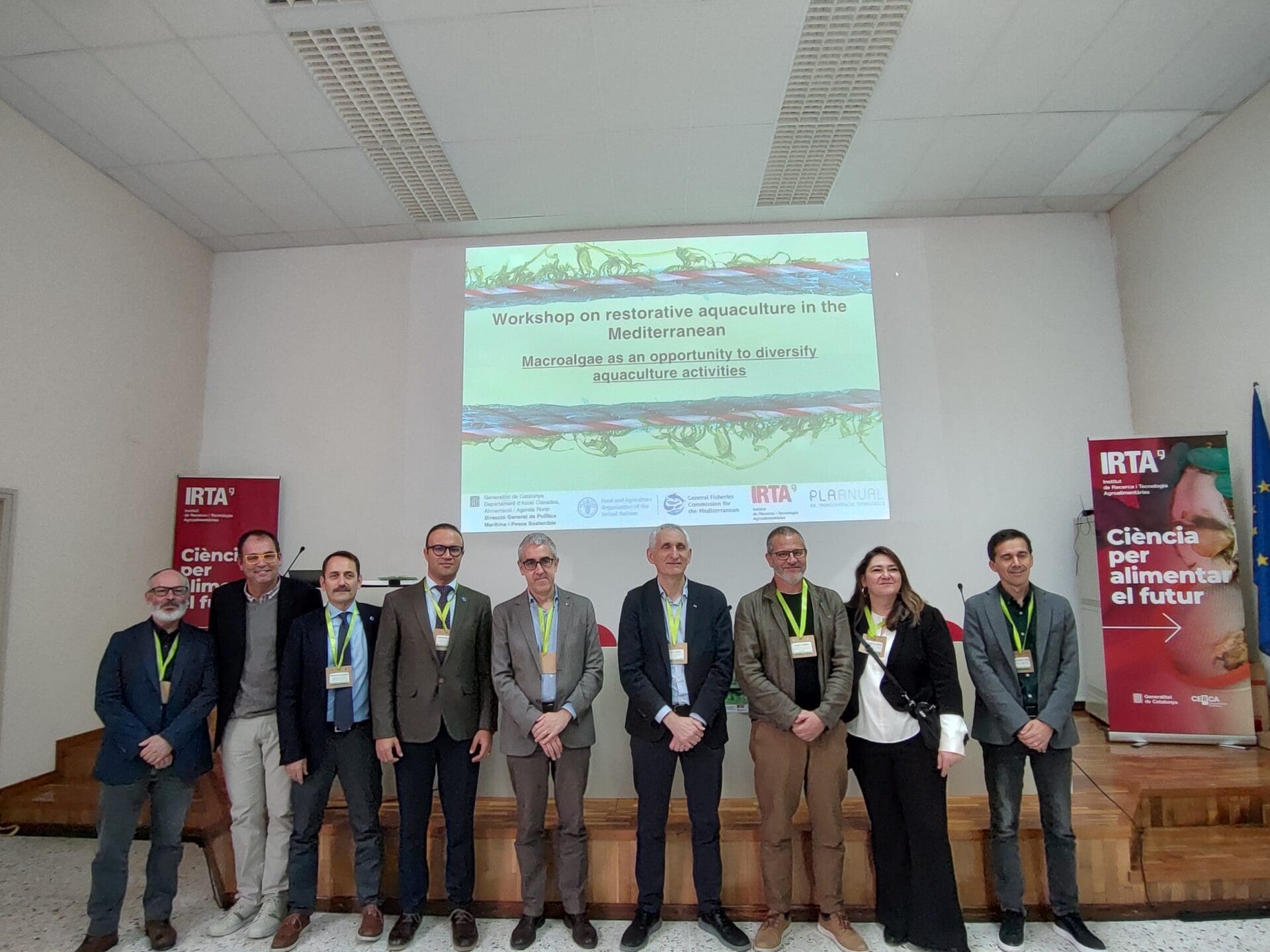 Representantes institucionales en la jornada sobre acuicultura restaurativa en el IRTA de La Ràpita (Foto: IRTA)
