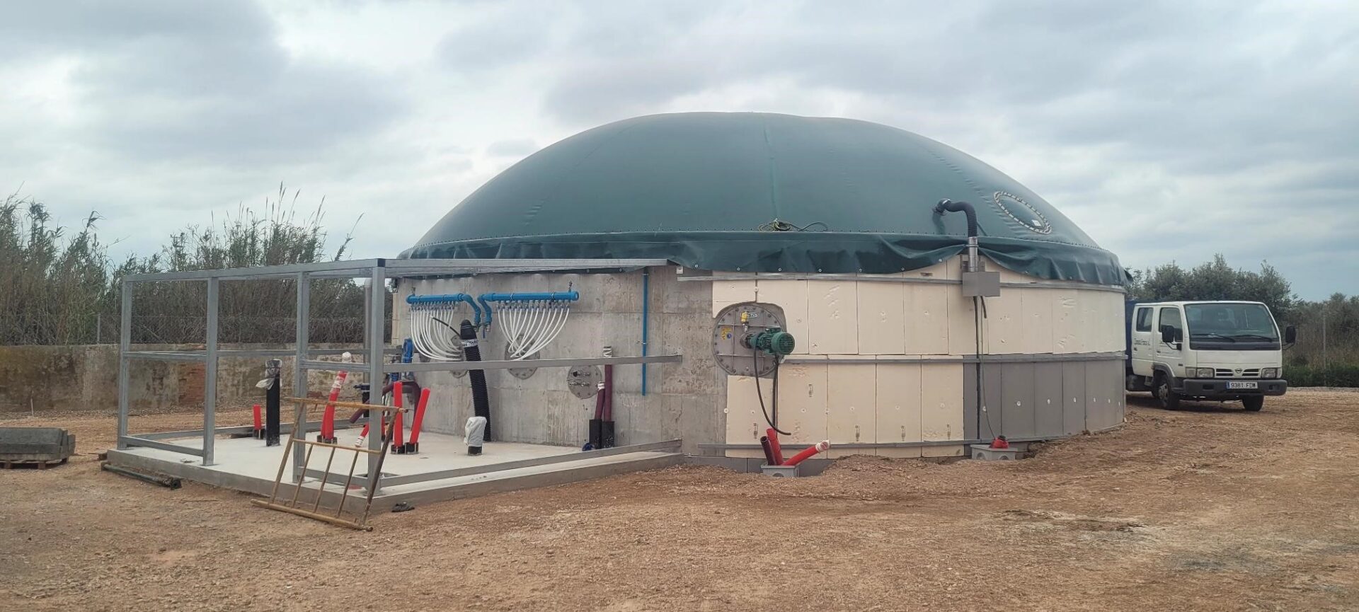 La planta experimental de biogàs de Mas Bové, en la fase final de la seva construcció.